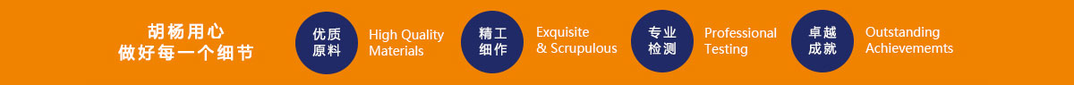 品質18年:胡楊采用進口優質原料,擁有先進生產設備、標準化生產線管理、職業化管理團隊等頂尖硬件實力, 使得胡楊始終深受廣大顧客的喜愛和認可。